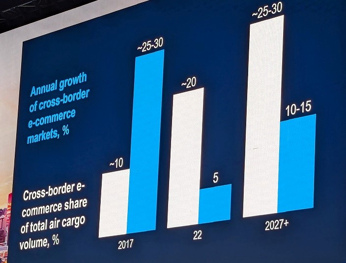 During the ‘Air Cargo Market Dynamics 2024 and the E-commerce Opportunity’ session, Hausmann said that in 2017, the cross-border e-commerce share of total air cargo volume was 10%.